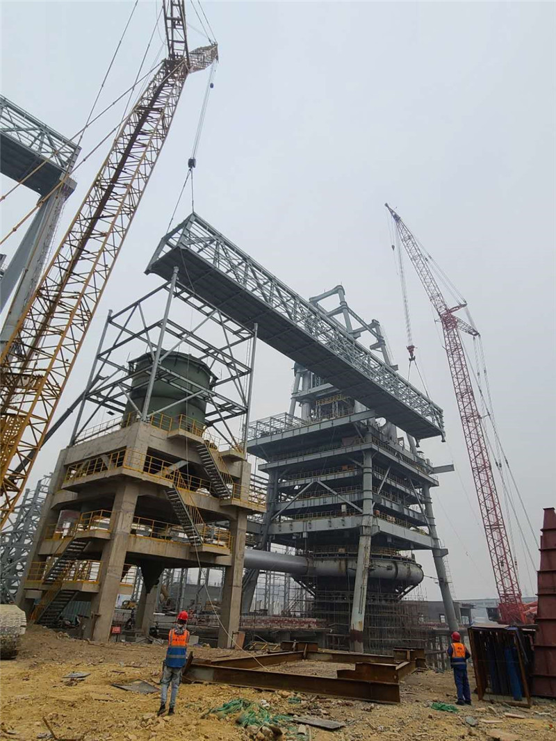5#通廊在4000噸米塔吊和350噸履帶吊相互合力下,經過近6個小時的吊裝,順利達到68.90米就位高度,按計劃節點提前7天完成高爐主皮帶通廊的整體鋼結構安裝。這是萊鋼1#3800m3高爐本體工程中吊裝高度最高、單體重量最重、跨度最大的鋼結構件,5號通廊成功安裝,為后續設備安裝、通廊封閉、設備單機調試等創造了有利條件,同時給其他各參建單位做了號的榜樣,便于帶動其他工序積極作業施工。