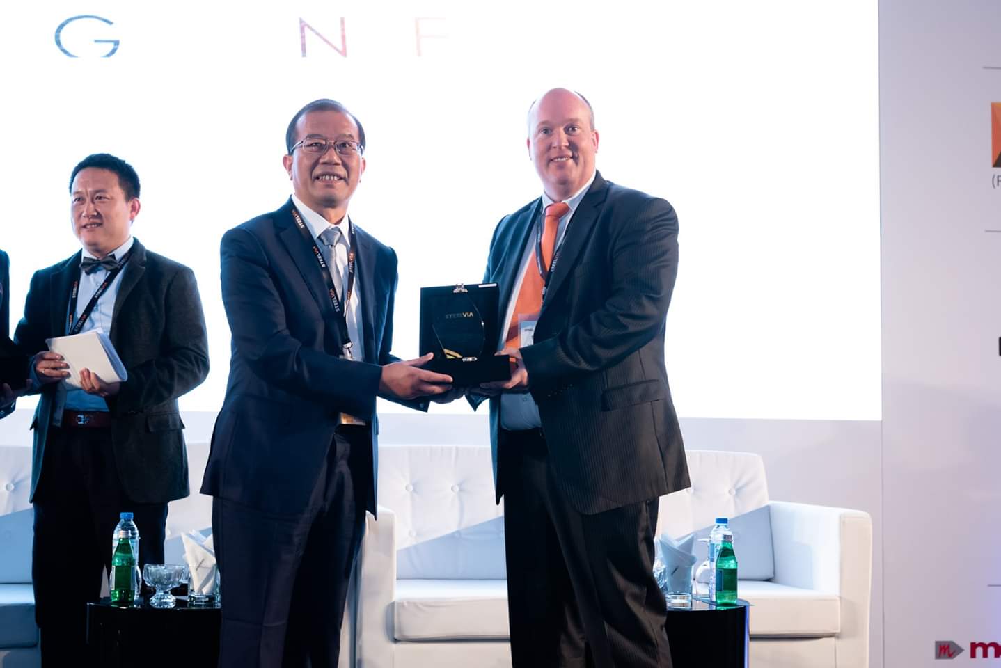 魏新民董事長作為特邀嘉賓出席了本次論壇,并為普瑞特、塔塔、澳大利亞參會公司頒發了“論壇紀念徽章”。為了擴大山冶設計的國際影響力和知名度,國際業務分公司和煉鐵室派代表參加了此次論壇及展覽會,并在技術論壇會上發言,向參會人員全方位介紹了HISmelt技術。
