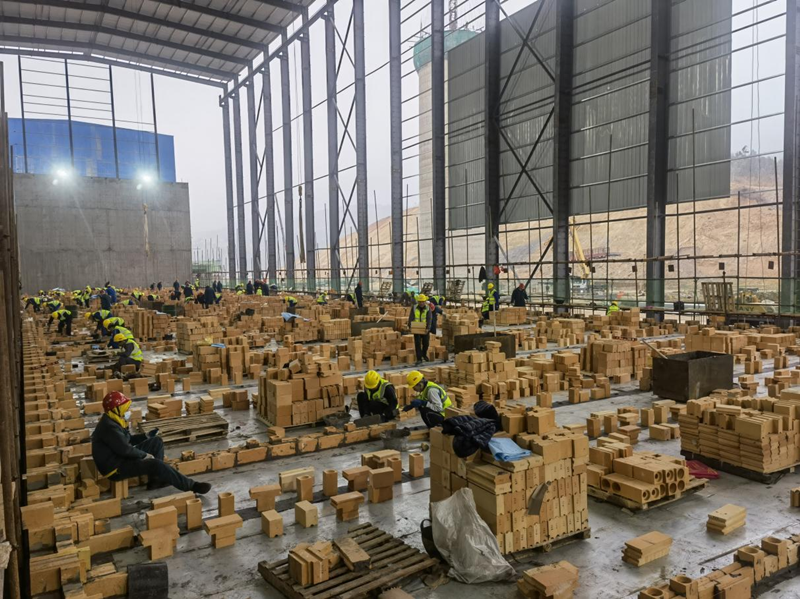 云煤能源焦化升級項目建設的7.6m頂裝焦爐,2座焦爐用磚量7萬噸,磚型多達1000多種,磚型復雜,對耐材生產供貨及管理要求很高,公司領導在耐材訂貨時就高瞻遠矚十分重視、派遣數位人員駐廠監制,云煤焦爐砌筑工期十分緊張,加上現階段國內新建焦爐較多耐材供應本就較緊張,以及受疫情以及冬奧會影響,生產供應更加困難。云煤1#焦爐砌筑時間與山冶負責設計與項目管理的山西盛隆泰達項目砌筑時間相近,且粘土磚生產廠家均包含濟源耐火爐業,粘土磚供應保障壓力極大。為了保證砌筑進度,云煤項目部積極協調各方、千方百計保證耐材供貨以滿足砌筑需求。一方面派遣專業工程師駐廠催交監制,另一方面協調其他耐材生產廠家協助粘土磚生產保供應。項目管理分公司負責耐材管理的石景林,每天不辭辛苦聯系廠家發貨、溝通到貨時間、協調施工方卸貨,晚上還要統計每天10~20車數百個磚號的到貨量。在耐材砌筑質量管理方面,我們外聘了2位有豐富施工與砌筑經驗的老同志,為焦爐砌筑施工質量保駕護航。