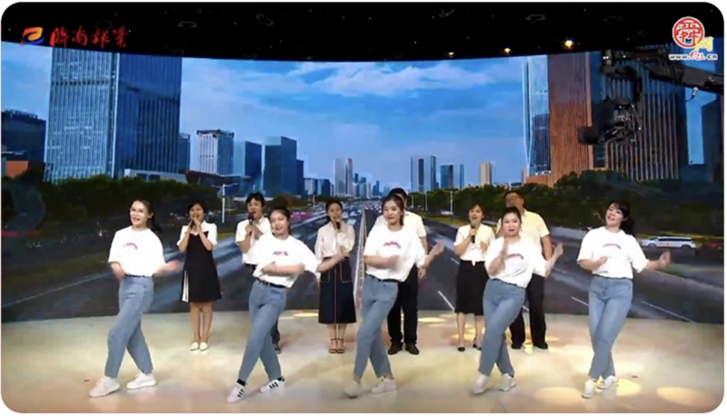 活動的開場演出節目——歌舞《我們都是追夢人》,是由山冶設計代表隊的5名耀華公司舞蹈演員(左起:趙云;劉佳瑋;張培惠;王佳穎;劉海燕)與市委市直機關工委、市委黨校、濟南出版有限公司、市政府資金結算中心的6名歌唱演員聯合出演,催人奮進的勵志歌詞,渾厚悠揚的甜美歌聲,火辣、動感、青春的曼妙舞姿,頃刻間打開了每位觀眾的心扉,讓人心潮澎湃,斗志昂揚,情禁不抑。該節目獲得了本次演出活動的“優秀組織獎”。