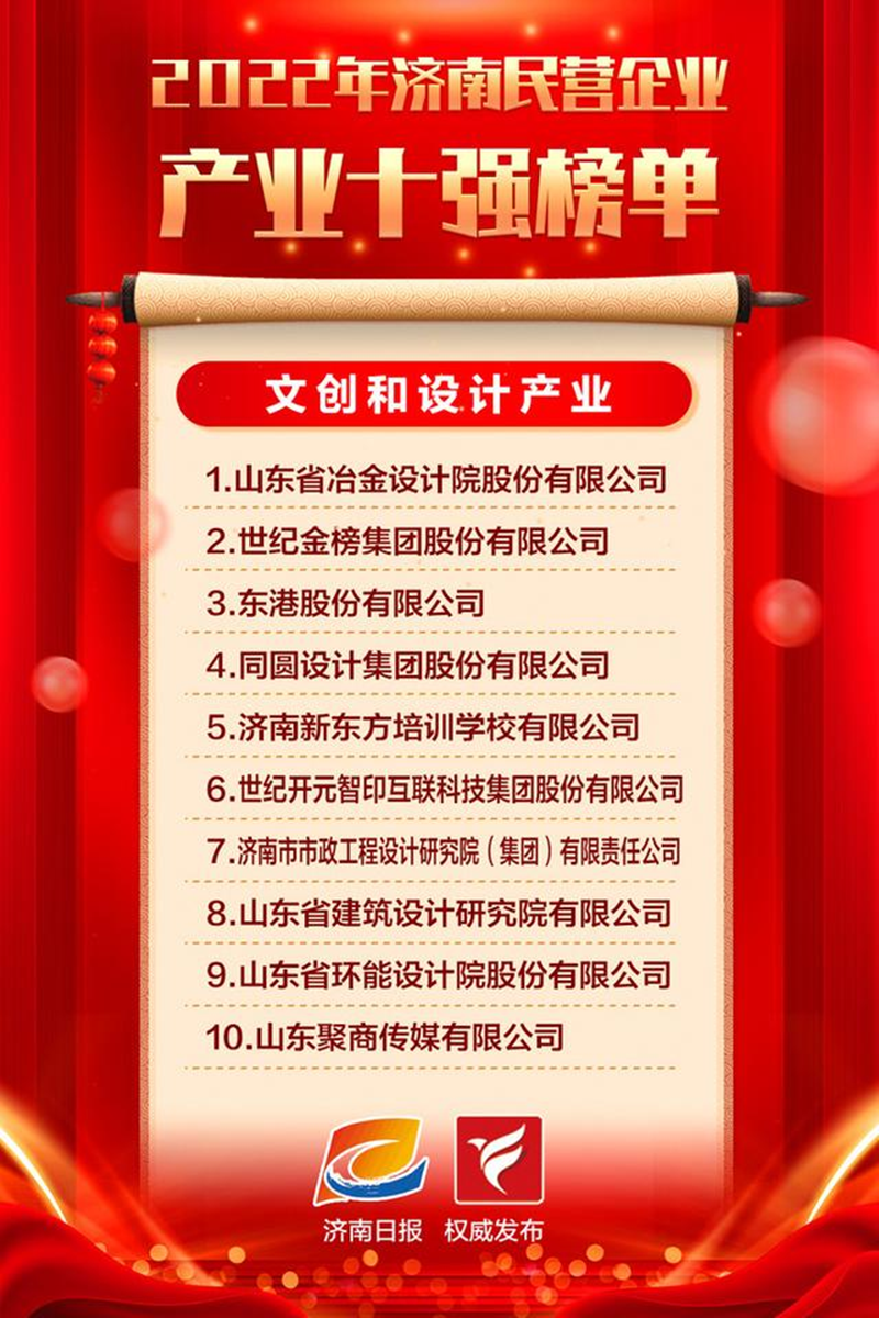 春種一粒粟,秋收萬顆子。金秋十月我公司榮登“濟南市民營企業百強”榜。這是繼獲得2021年度“濟南市名企品牌百強領跑企業”“山東省高端品牌培育企業”等榮譽稱號之后獲得濟南市的又一殊榮。
